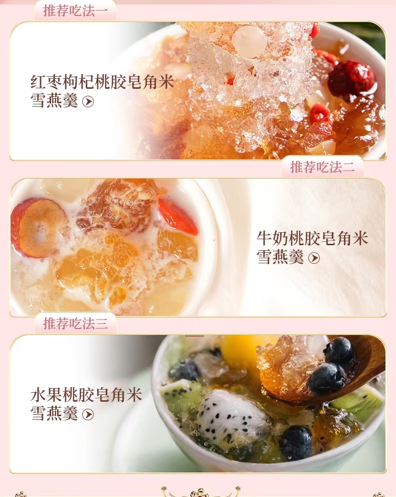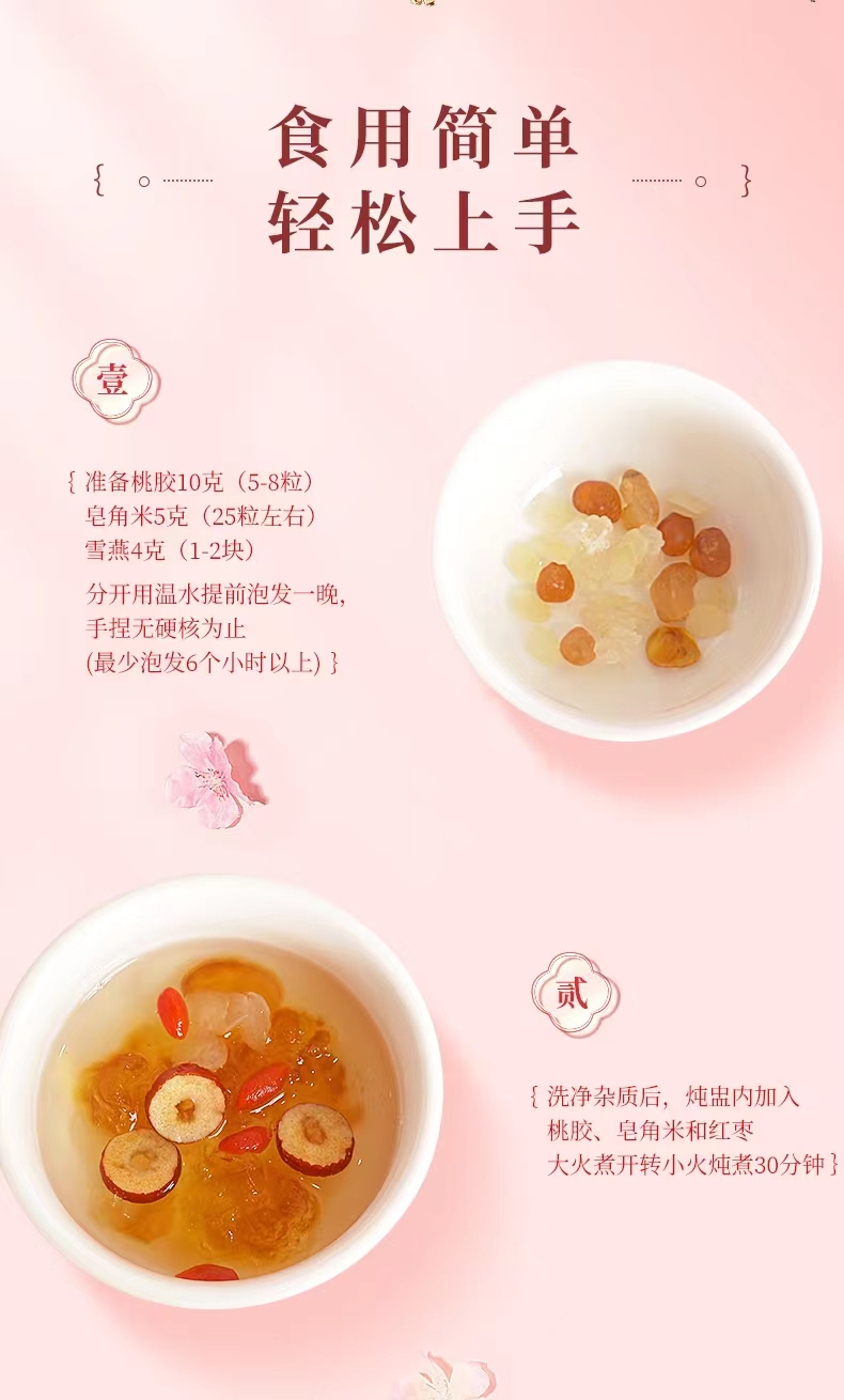 云南桃胶、白皂荚米、雪燕养颜羹组合装.txt